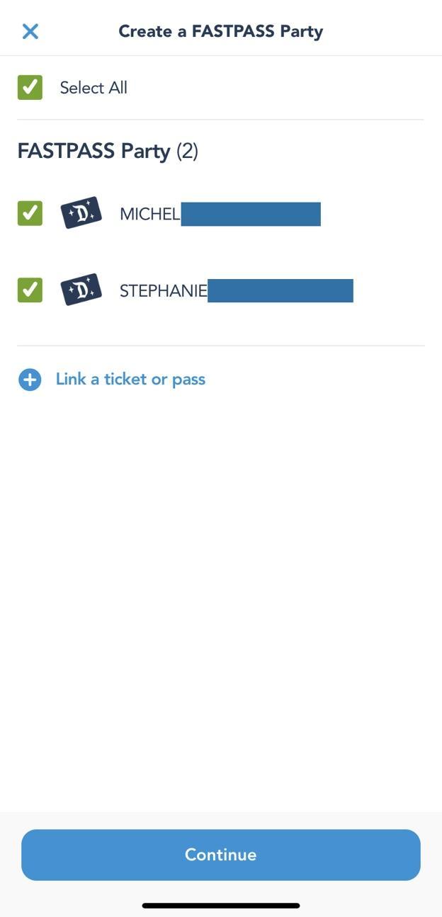 Asegúrate de nombrar cada boleto con el nombre de la persona apropiada cuando los agregues, porque no puedes cambiarlo. Te hará la vida mucho más fácil si puedes ver los nombres (a diferencia del número de boleto al elegir quién quiere un FASTPASS).
